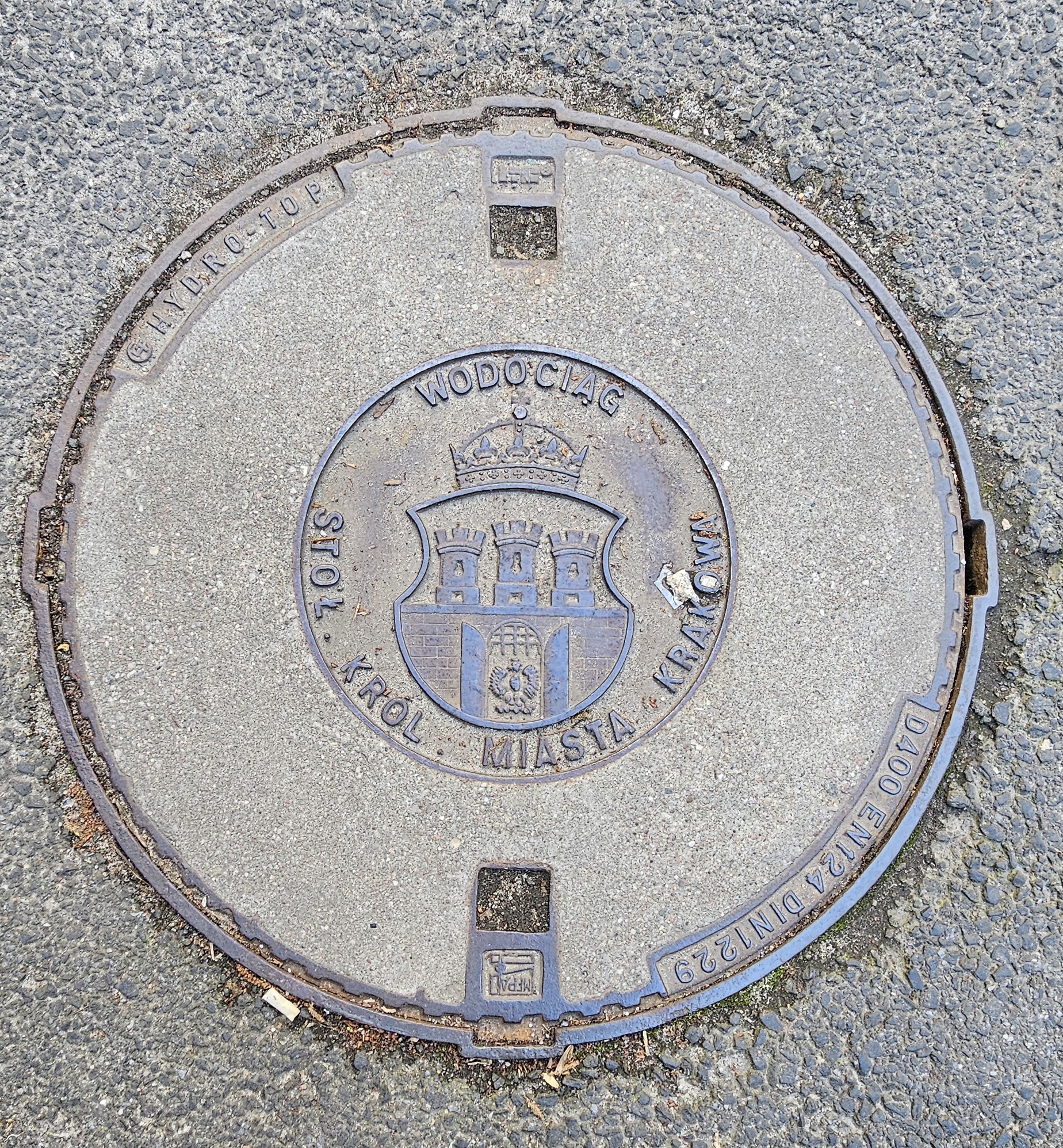 I was just scrolling around the pictures from the Kraków visit and found another manhole cover that is a bit special. There seems to be some concrete within the cover itself, look at the picture…
